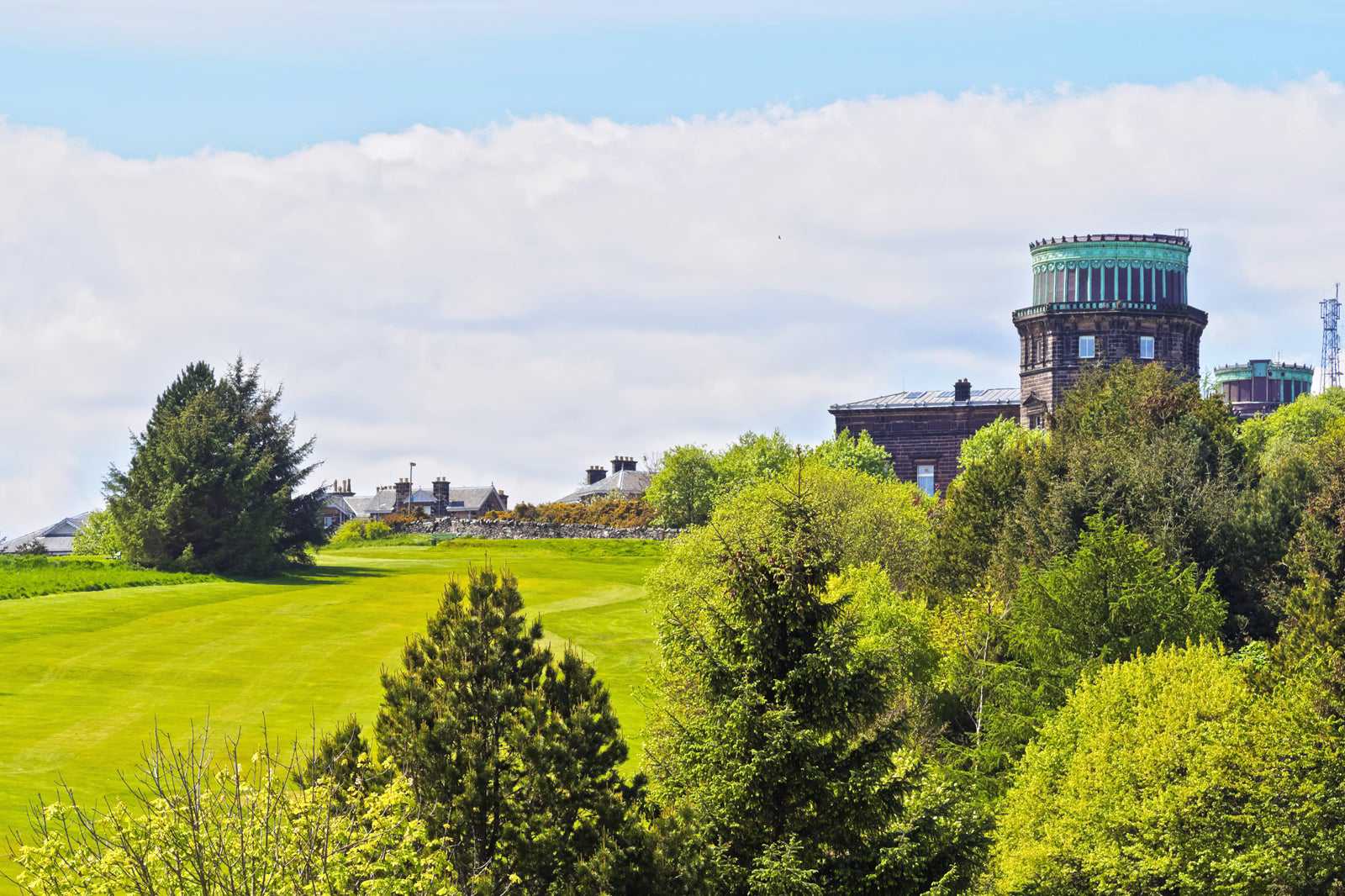 The original Royal Observatory was located on Calton Hill near Edinburgh town centre. Because of insufficient funding and obsolete instruments and buildings, the observatory was under threat by a proposal to have the site demolished. To save the observatory, the Earl of Crawford, Lord Lindsay, donated his personal, rare collection of scientific books, as well as a large amount of astronomy equipment. The government, in turn, agreed to fund and maintain the new site. The Royal Observatory Edinburgh was established on Blackford Hill in 1896, and the new building was outfitted with laboratories, a library and offices. The modern telescopes were located in 2 revolving domes adorned in copper, and those telescopes continued to be used up until the 1970s.